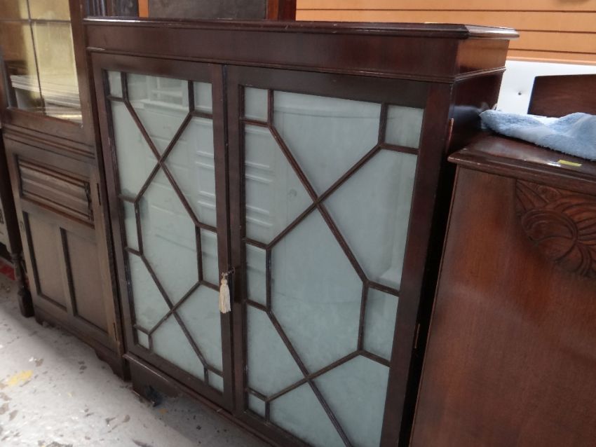 REPRODUCTION MAHOGANY ASTRAGAL GLAZED TWO DOOR CABINETHeight – 112cmsLength – 90cmsDepth – 31cms