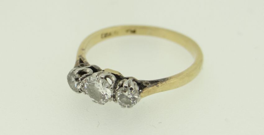 18CT YELLOW GOLD THREE STONE DIAMOND RING