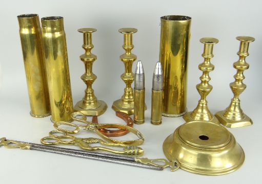 ASSORTED BRASSWARE to include fire irons, shells, candlesticks ETC