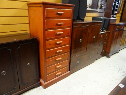 ASSORTED FURNITURE including reproduction cabinets and chest, narrow chest ETC
