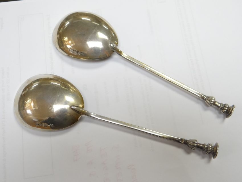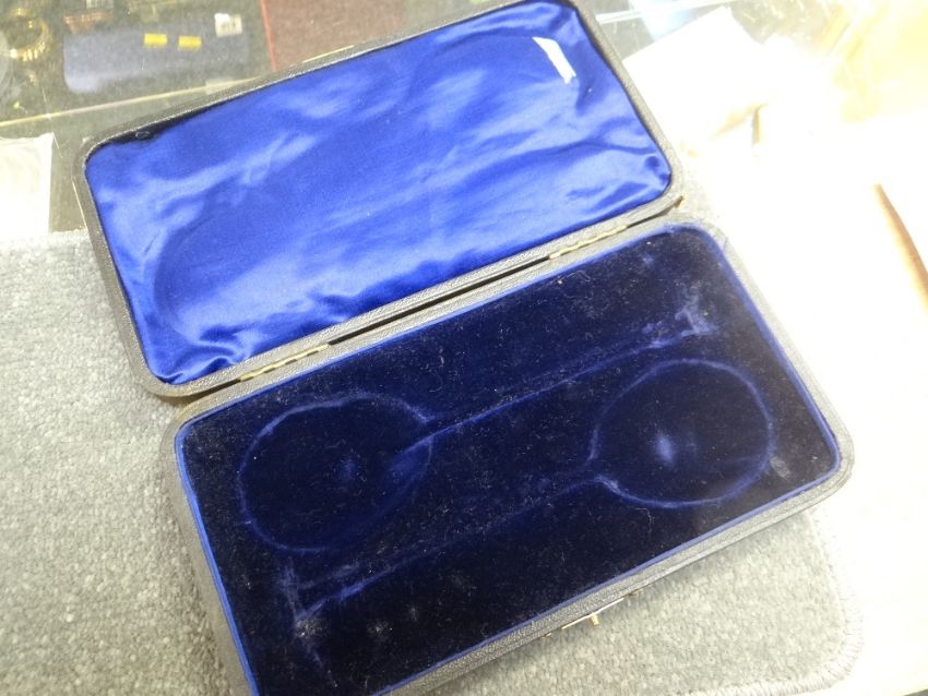CASED PAIR OF SILVER ANOINTING SPOONS with seal-type terminals, London 1905, William Hutton & Sons, 3.2ozs