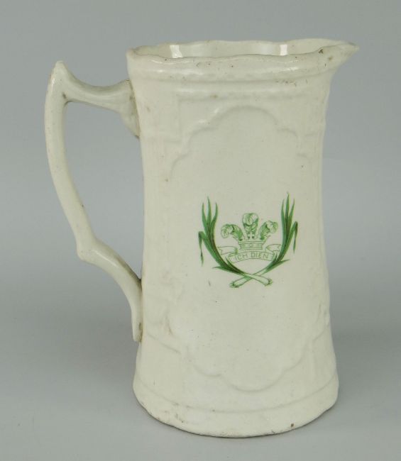 VINTAGE COMMEMORATIVE JUG FOR DAVID LLOYD GEORGE, portrait of the politician with Welsh inscription and Welsh crest to the reverse, 16cms high