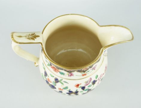 WELSH POTTERY & PORCELAIN to include Swansea Porcelain London painted dish bearing label 'P.E Morris Collection', Swansea Porcelain hand painted dish with Sotheby's label to base, Swansea Porcelain berry and leaf decorated dish, and floral and foliate decorated pot bellied jug with red script mark to base 'Swansea' (4)