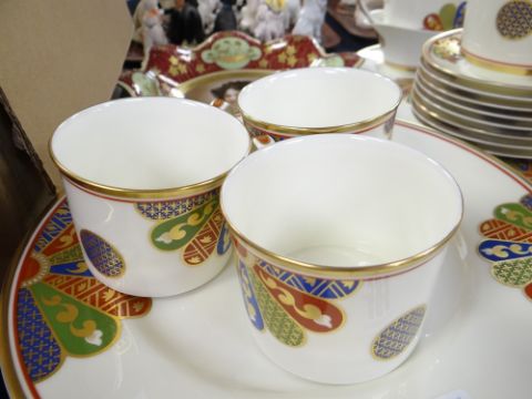ROYAL WORCESTER 'PAVILION' DINNERWARE circa 1974, decorated in Japanese-fan style with gilding, approximately 60 pieces total