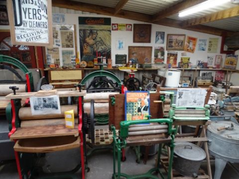 Enamel and other advertising signage to include CHARING CROSS, PRINCE ALBERT ROAD, BANK'S TRADITIONAL DRAUGHT BEER, NEWCASTLE BROWN ALE, BEAMISH ROAD (light up), ANSELLS, KNORR, MICHELIN, BROOKE BOND, WALLS, ORANGE MAID, WOODBINES, BRISTOL TIPPED CIGARETTES, BRIGSOLENE, WILLS GOLD FLAKE, GOODYEAR and many more, pub mirrors CHIVAS, MARCELLA, MACKESON, Sinclair C5 electric tricycle, approximately 20 mangles, WWII and other militaria items, police constabulary ephemera, approximately 20 prams, dolls and toys, many children's trikes, bicycles, tinplate and push-along toys, medical equipment, walking sticks, helmets, medals, signalling lamp, good cameras, smoking ephemera, gramophones and vintage record players, radios, vintage domestic items and kitchenalia to include Prestcold fridge, Rippingilles cooker (2), GEC cooker, vintage vacuum cleaners, jerry cans including commercial, approximately 5 butter churns, photography ephemera, retro picnic cases, telephones, old tools, sewing machines, vintage weighing scales of all types, huge collection of pottery mugs etc etc