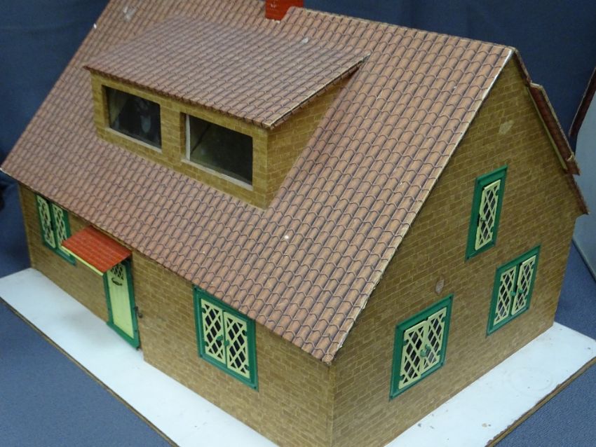 TWO VINTAGE UNFURNISHED DOLLS/MINIATURE COLLECTORS' HOUSES, 51 and 39cm heights, one having original tin plate windows and doors