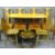 QUANTITY OF VINTAGE FURNITURE to include a set of four high back dining chairs, splat back with drop-in seats, two spindle back farmhouse chairs, a priory circular side table and a mid-century coffee table, various measurements