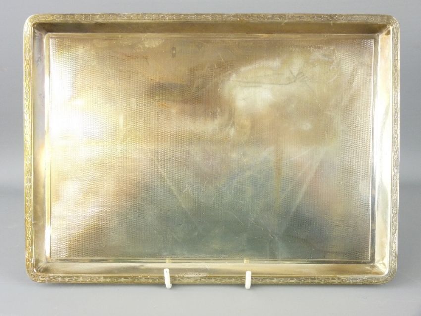 A SILVER RECTANGULAR TRAY, London 1923, maker possibly Charles Henry Dumenil, 28 x 20cms, 13.6 troy ozs