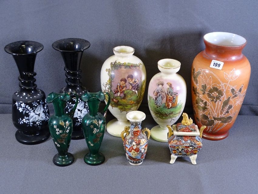 MILK GLASSWARE, Mary Gregory style vases ETC