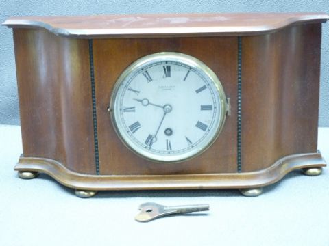 MAHOGANY MANTEL CLOCK, 'JONES & SONS LIVERPOOL' with silver dial