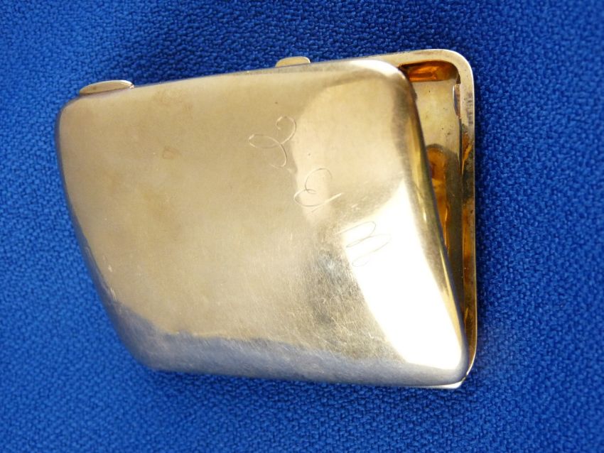18CT GOLD CIGARETTE CASE of slightly curved plain form with initials to one corner of the lid, 2.6ozs (82grms) Chester 1910