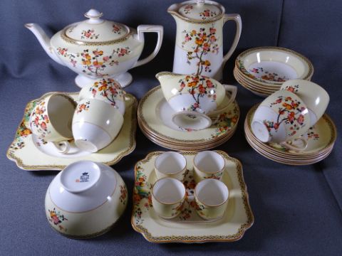 CROWN DUCAL FLORAL DECORATED DINNERWARE, approximately 40 pieces