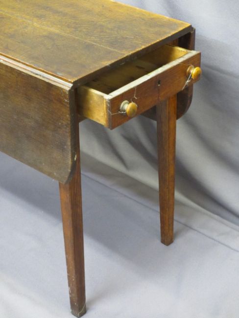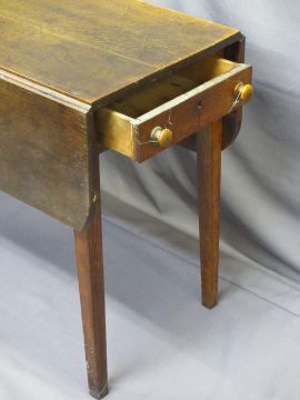 EARLY POLISHED DROP SIDE TABLE with end drawers, 122cms W