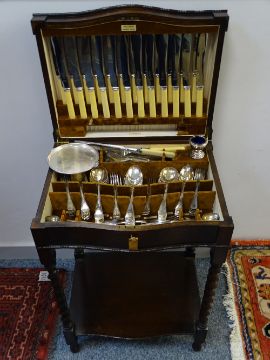 CUTLERY TABLE with barley twist supports, bone handle and other contents