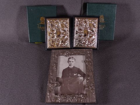 WHITE METAL COVERED CORRESPONDENT BOOKS in boxes by Yeoman of England and a heavy white metal picture frame
