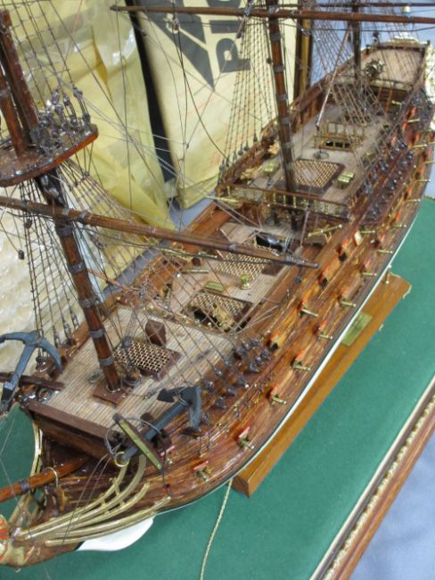 SCRATCH BUILT MODEL OF THE 1765 NORWEGIAN LION FULLY RIGGED GUN SHIP 'Norske Lode' in a modern glass case, 105cms H, 110cms W, 47cms D the case