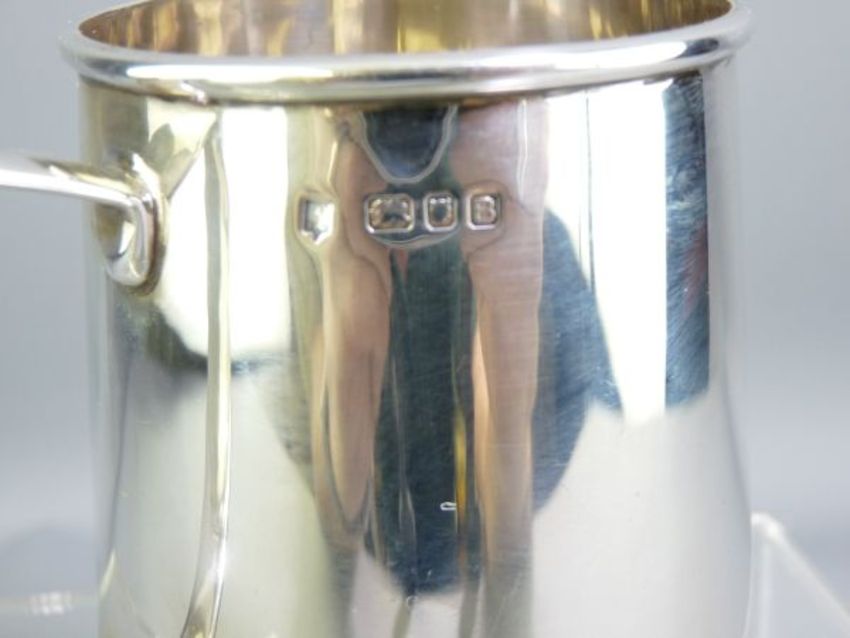 SILVER MUG, LONDON 1937, indistinct Maker's mark, 9cms H, 5.7 troy ozs, the base stamped 'Clarkson North Allerton'