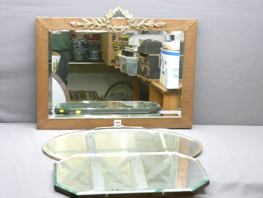 COPPER FRAMED MIRROR and two other similar period mirrors
