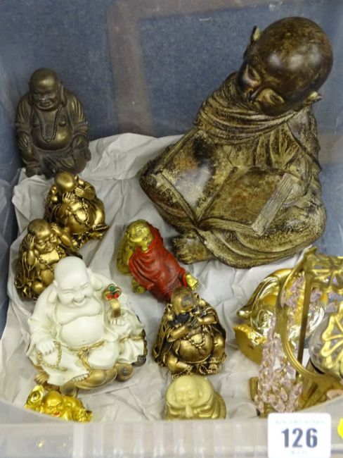 LUCKY BUDDHA FIGURINES and a small lamp lustre