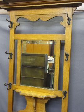 CIRCA 1900 MIRRORED OAK HALL STAND, drip trays intact, 203cms H, 68cms max W, 26cms D