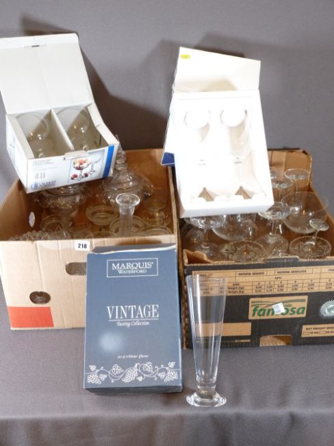 WATERFORD MARQUIS - four Pilsner glass box sets, 'Grey Goose Le Grand Fizz' pair of boxed wine glasses, Schott crystal and other quality glassware