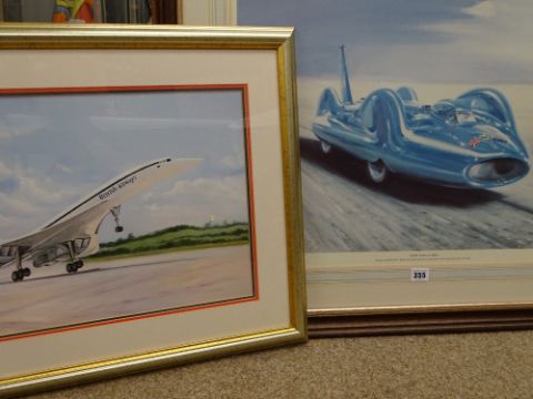 PITTAWAY limited edition print - entitled 'How long a mile' depicting Donald Campbell's world land speed record, signed in pencil by the artist and by Gina Campbell, 45 x 63cms and a print of Concorde, unsigned, 31 x 51cms