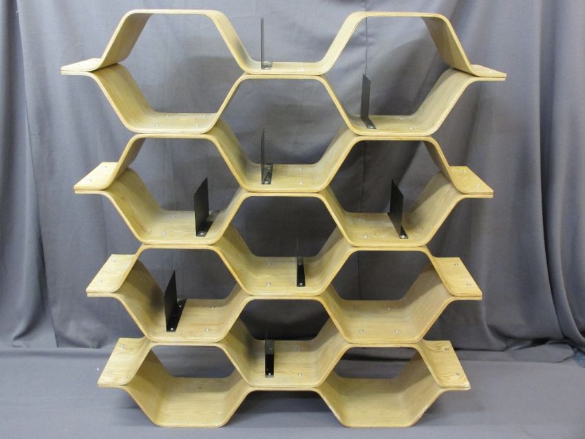 STYLISH ULTRA MODERN BENTWOOD DISPLAY RACK/BOOKCASE, 149cms H, 137cms W, 32.5cms D