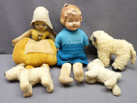 ANTIQUE DOLLS & SOFT TOYS, one labelled Chad Valley