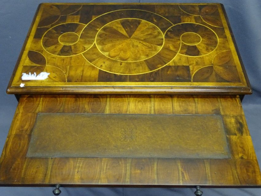 EASTERN OYSTER VENEER REPRODUCTION BACHELOR'S CHEST of two short and two long drawers with tooled slider, 78cms H, 78cms W, 50cms D