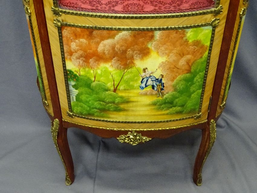 EMPIRE STYLE VITRINE CABINET, gilt metal mounts, gallery top and fabric panelled paintings, 167cms H, 71cms W, 34cms D