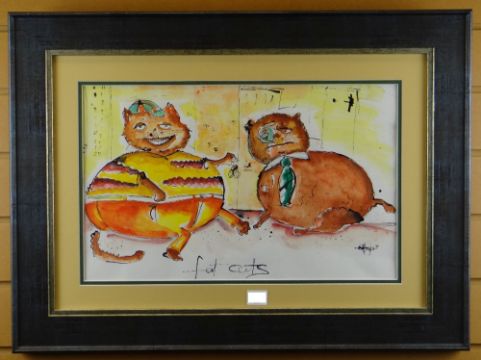 UNKNOWN two caricature cats, entitled 'Fat Cats', 30 x 48cms
