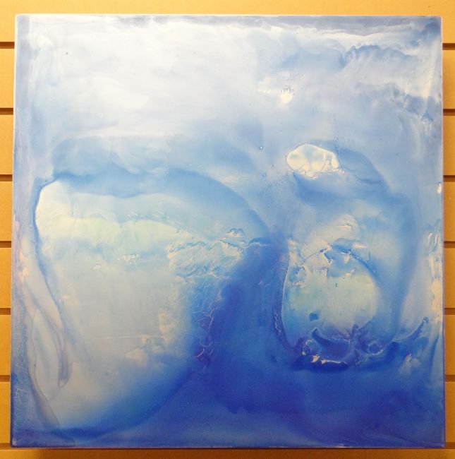 JULIA BROOKER acrylic on aluminium - blue and gold abstract, entitled 'Dreamtime III', dated 2019, 62 x 62cms