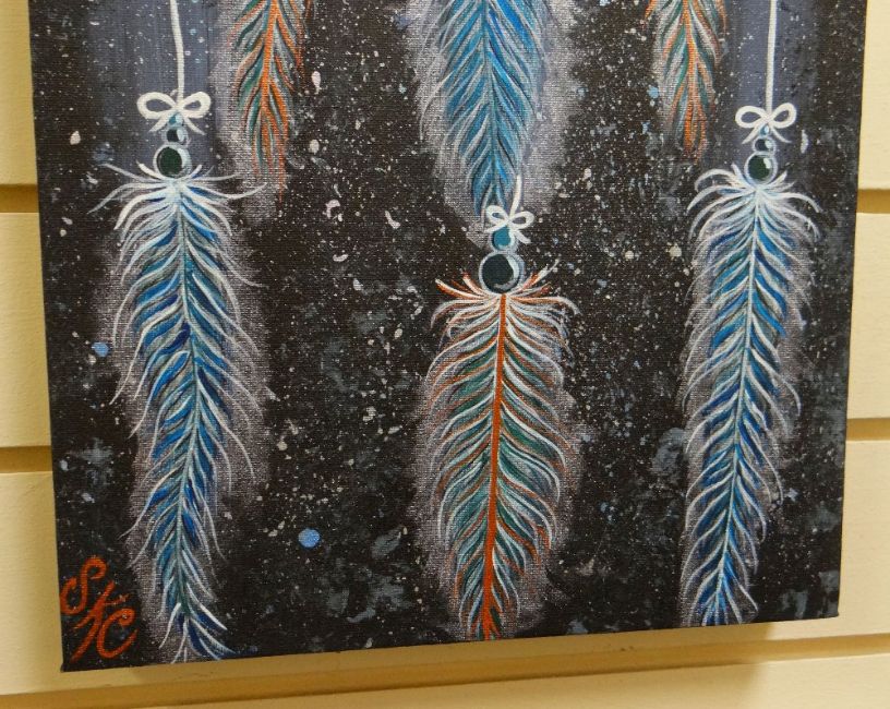 SARAH BRYANT acrylic on canvas - dream catcher, entitled 'Keeper of Dreams', signed and dated 2018, 80 x 30cms