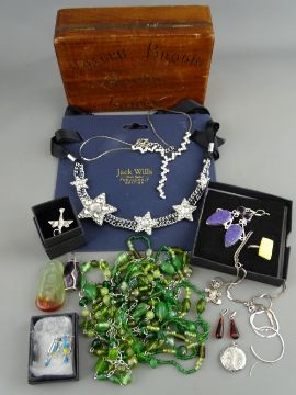 TIFFANY & CO, JACK WILLS sterling silver and amber jewellery, a collection and a vintage wooden box with painted detail for 'Joseph Brodie, Lodge No 1053, Royal Antedilluviam Order of Buffalos'