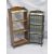 BOOKCASES - two open shelved narrow, one with 'Arts and Craft' style carving and 18 Dickens' volumes