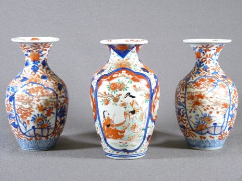 IMARI VASES, a pair, 19cms H and a similar decorated