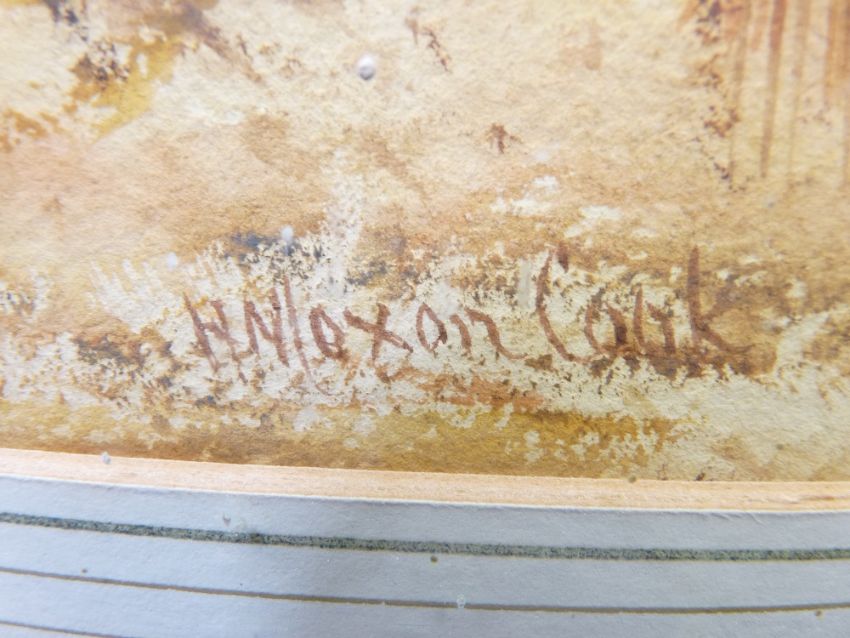 INDISTINCTLY SIGNED original watercolours - mountains and lake, signed and dated, H MOXAM COOK - Autumn Harvest, probably 19th century and original watercolour of Salisbury, signed by T and dated 1925