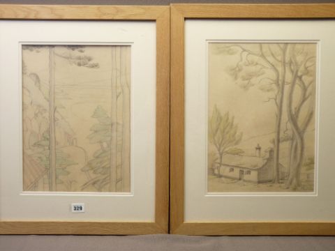 MERRYL WATTS mixed media, a pair - 'Portmeirion', signed