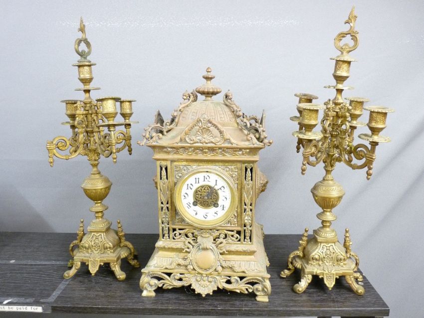 FRENCH CLOCK GARNITURE - cast brass near matching