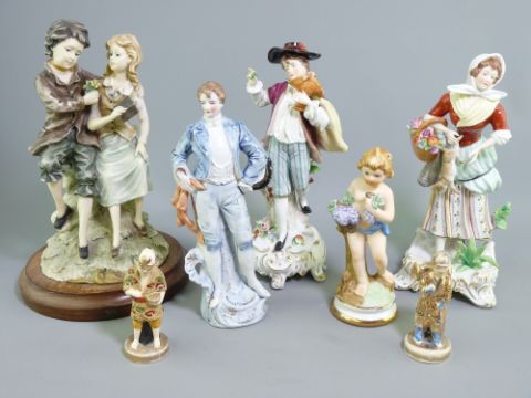 SITZENDORF CONTINENTAL FIGURINES, a pair, 23cms H, a pair of Japanese miniature figurines and similar items
