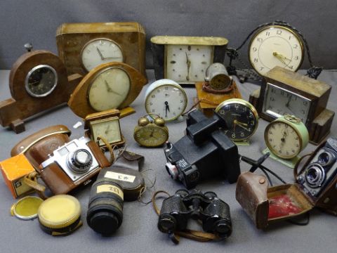 VINTAGE CAMERAS ASSOCIATED EQUIPMENT and a quantity of various clocks