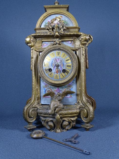 FRENCH BRACKET CLOCK - elaborately decorated with painted detail including cherubs