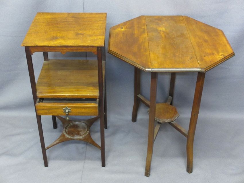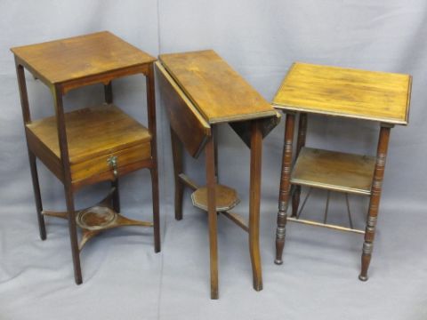 ANTIQUE & VINTAGE FURNITURE, three items to include a 19th century night stand, 77cms H, a twin-flap Sutherland table, 70cms H and a two tier Edwardian square top side table, 66cms H