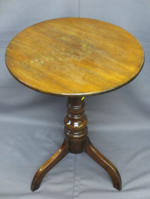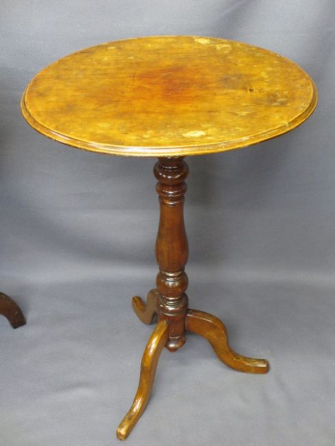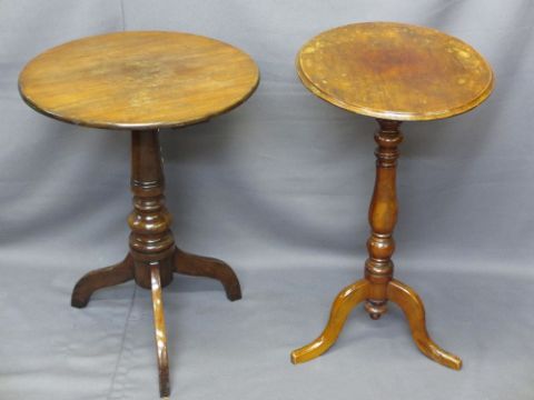 19TH CENTURY MAHOGANY CIRCULAR TOP TRIPOD TABLE and one other, 75cms H, 54cms diameter, 78cms H, 55 x 44cms top