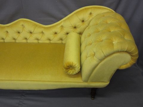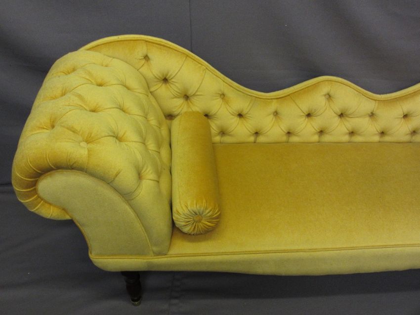 REPRODUCTION BUTTON UPHOLSTERED DOUBLE SCROLL-END COUCH, 77cms H, 194cms L, 60cms D