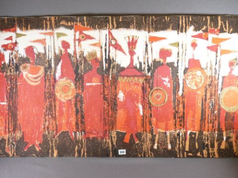 TIBOR REICH fabric screen print - 'Shakespeare's Age of Kings 1964', 63 x 117cms