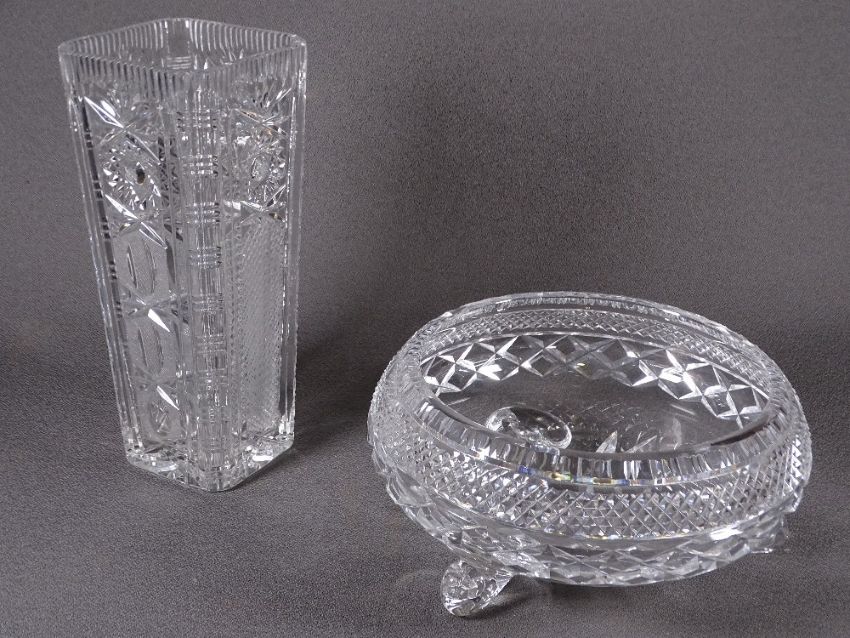 GLASSWARE - a quality square based vase, 25cms H and similar quality bowl