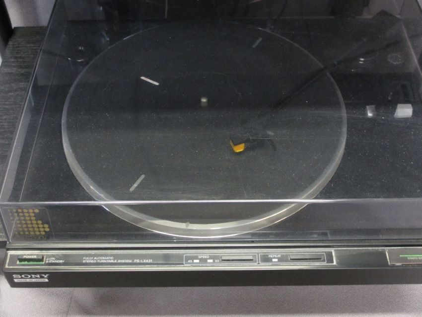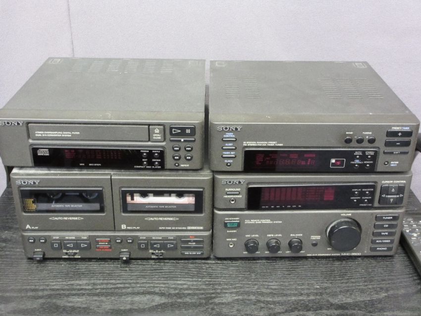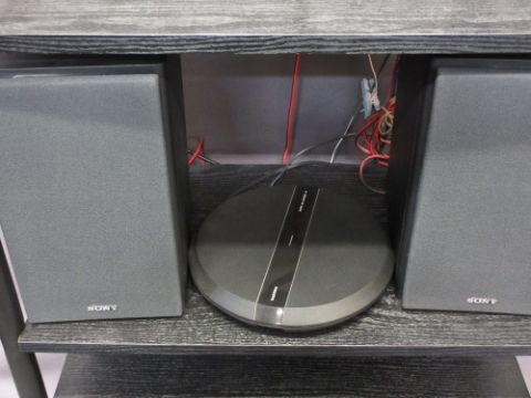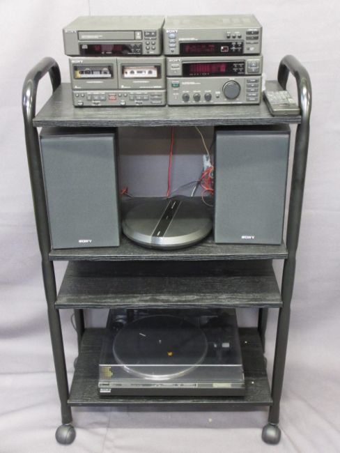 SONY MIDI HIFI SYSTEM with Bang and Olufsen active antenna on a black wooden metal stand E/T