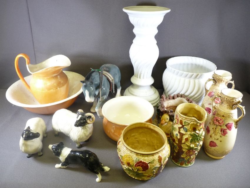 H J WOOD INDIAN TREE BOWL & JUG SET, pair of Staffordshire vases, china farm animals ETC