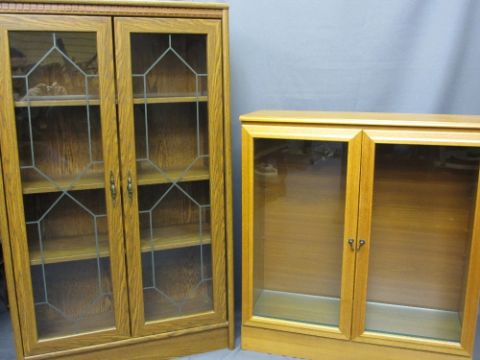 TWO MODERN TWIN-DOOR CABINETS/BOOKCASES, 127.5 and 89cms heights